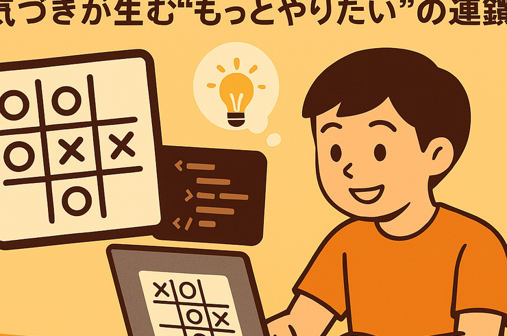 2026/01/24子どもたちにとって「マルバツゲーム」は身近で親しみのある遊びです。そんなシンプルなゲームでも、自分の手で作ってみようとすると、思いのほか難しく感じることがあります。 どこに〇や×を置くのか、勝ち負けをどう判断するのか、次にどの処理をすべきか…。一つひとつを考えながら組み立てていくうちに、いつの間にか論理的に物事を整理する力が試されていきます。 特に中学生や高校生の段階では、「とりあえず動く」を超え... -
