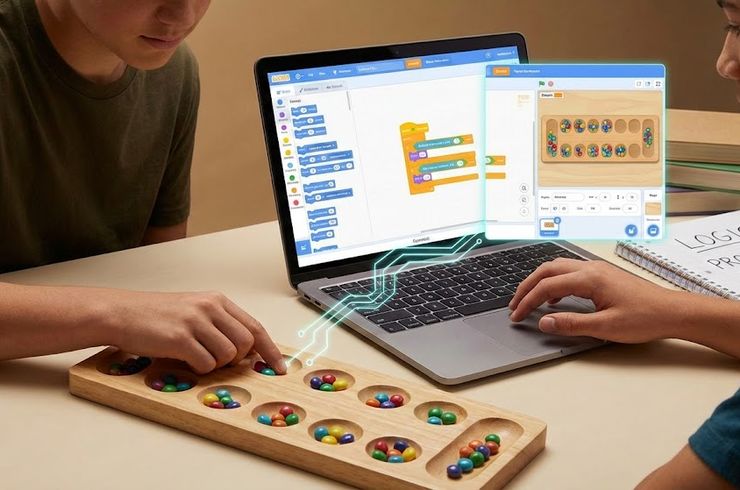 2025/12/20日常的にゲームに親しんでいる中高生でも、それを「学び」に変える体験は意外と少ないかもしれません。特に、プログラミングに興味はあるけれど、どう取り組んでいいか分からない、遊びで終わってしまいそう…と感じているご家庭も多いのではないでしょうか。 たとえば、昔ながらのボードゲーム「マンカラ」と、ビジュアルプログラミング言語「スクラッチ」を組み合わせることで、ただの遊びでは終わらない深い学びにつなげるこ... -