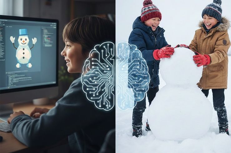 2026/02/21プログラミングを学んでいると、画面の中で思い通りにキャラクターが動くことに達成感を覚える場面があります。一方で、実際の世界で手を動かし、体を使って何かを作った経験は、また別の手応えを残します。 たとえば、プログラミング上で雪だるまのキャラクターを作ることはできます。大きさや色、動きまで細かく設定できるでしょう。しかし、自分で雪を集め、冷たい感触を感じながら丸め、崩れないように積み上げる体験は、... -