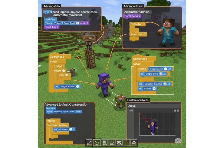 マインクラフトを使ったプログラミング学習は、特に人気があります。ブロックの世界で建物を作るだけでなく、命令を組み合わせて自動的に動く仕組みを作ったり、キャラクターを制御したりすることで、本格的な論理構築を体験できます。自分の作った世界で実際に動きを確かめられるのが、学びの楽しさにつながります。